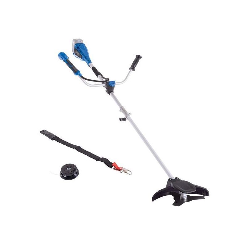 To je bežični 2-u-1 alat koji radi kao trimer sa strunom i kao kosa za šikaru s metalnim nožem. Operativno: struna je za rubove travnjaka i finije košenje, dok je nož s 3 zuba za visoku travu, korov i gušće raslinje gdje struna brzo puca i troši se.