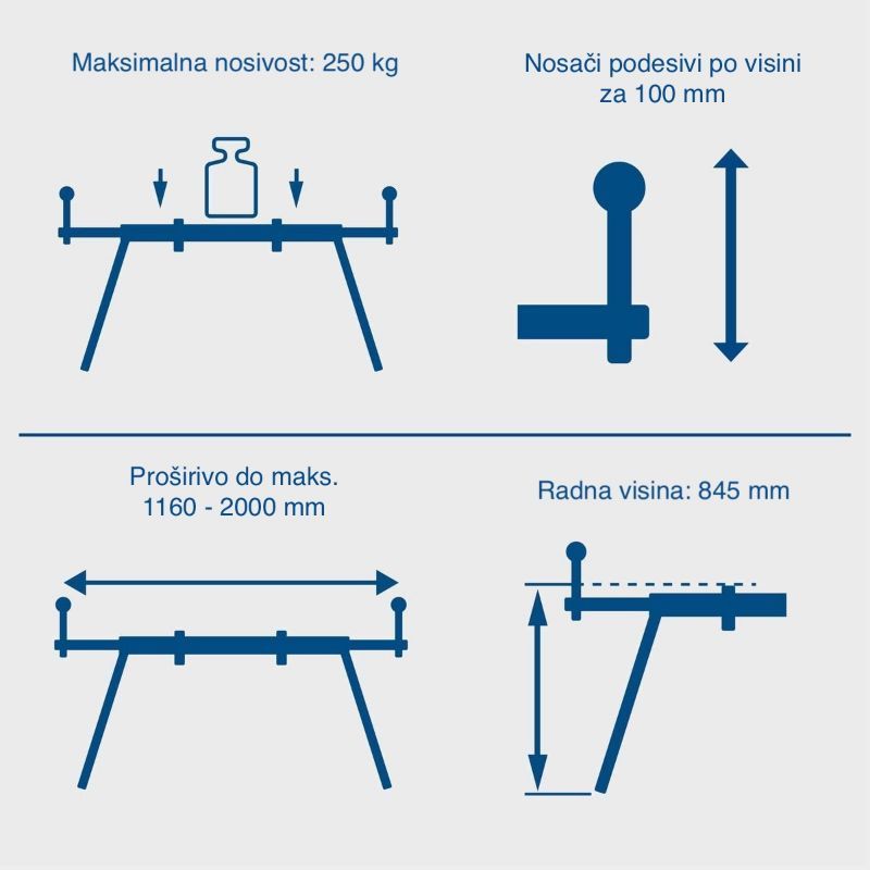 | Produžni nosači obratka | 1160–2000 mm |