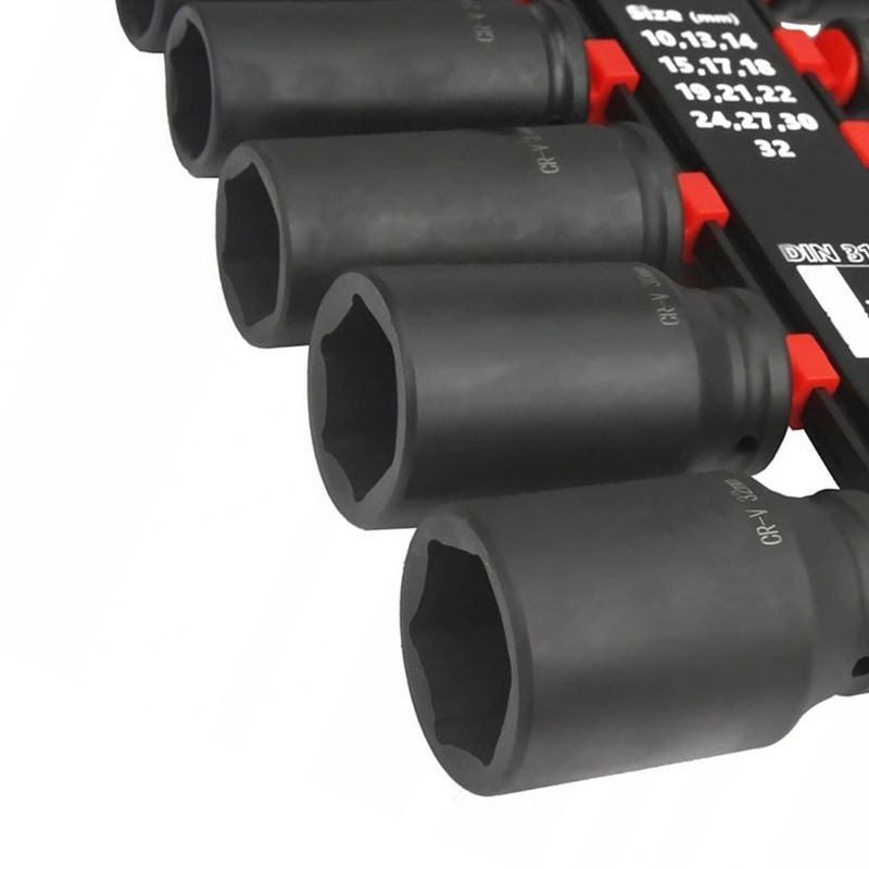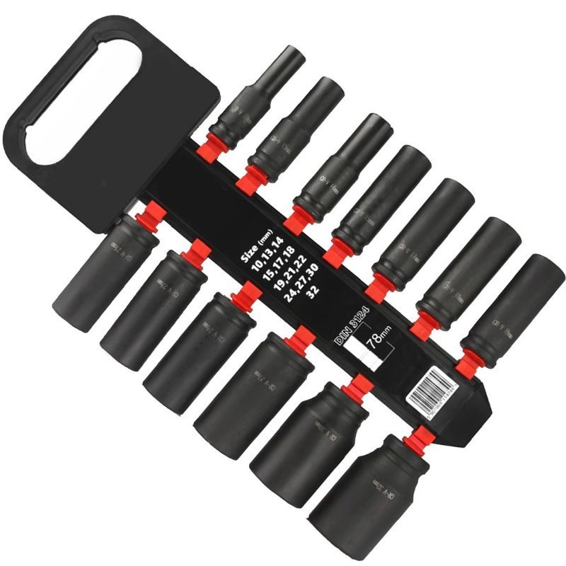 - set sadrži visokokvalitetne duge udarne nastavke s pogonom od 1/2", izrađene od izdržljivog krom-molibdenskog (CrMo) čelika