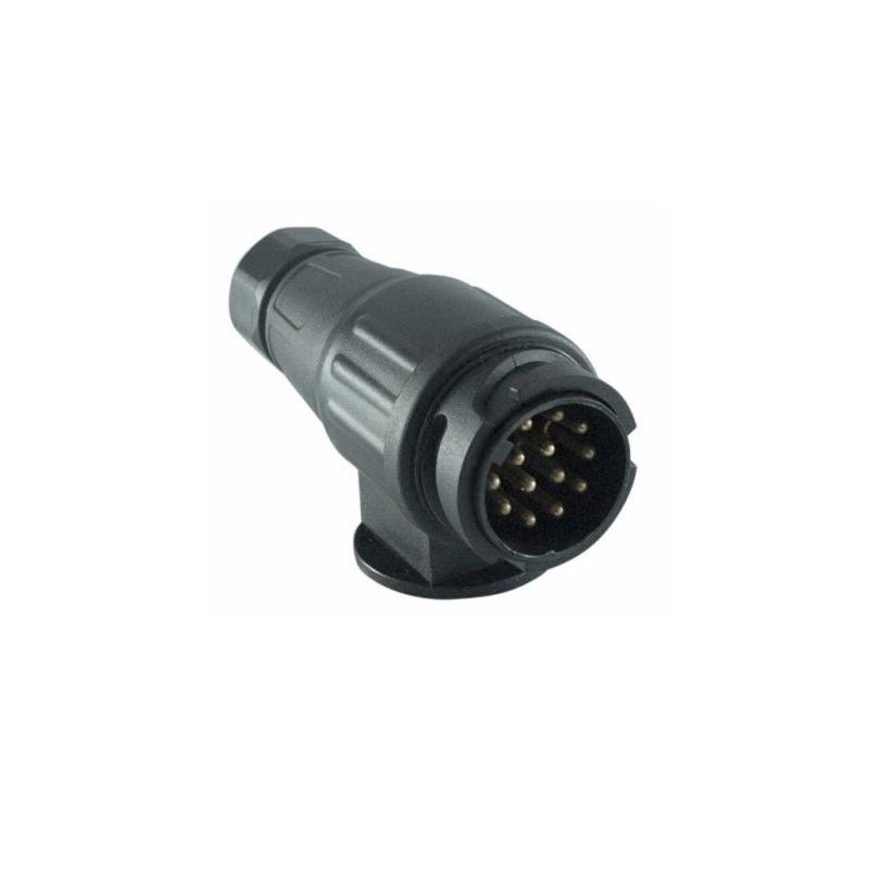 - 13-pinski utikač za autoprikolicu dizajniran je za sigurno i pouzdano spajanje električnih priključaka između vozila i prikolice