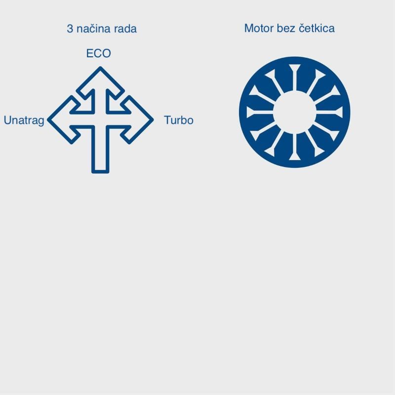 - pogon je motor bez četkica, s fokusom na manju potrošnju i smanjeno mehaničko trošenje u odnosu na klasične četkaste motore