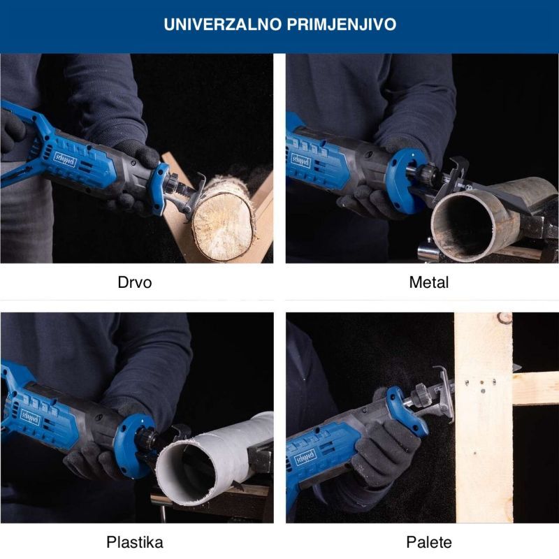 - Kompaktna recipročna pila za rezanje drva, plastike i metala s odgovarajućim listom.