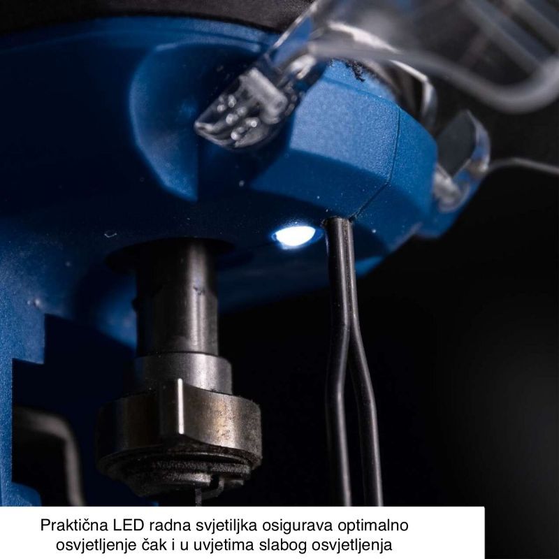 - Vidljivost linije reza drže prozirni štitnik oštrice, funkcija puhanja i LED radno svjetlo.