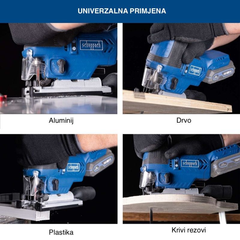 Namijenjena je za precizno rezanje drva, metala, aluminija, mesinga i plastike u radionici, domu i vrtu, posebno kada trebate mobilnost bez kabela. Maksimalne dubine rezanja su drvo 100 mm, plastika 100 mm i metal 10 mm (ovisno o listu pile i materijalu).