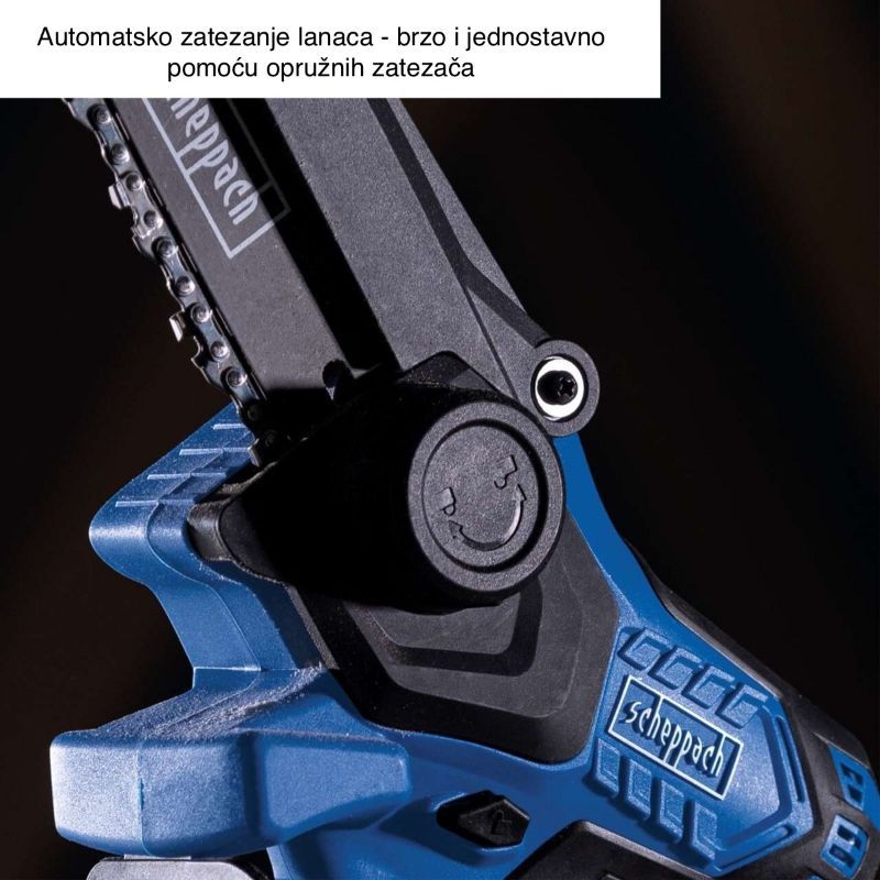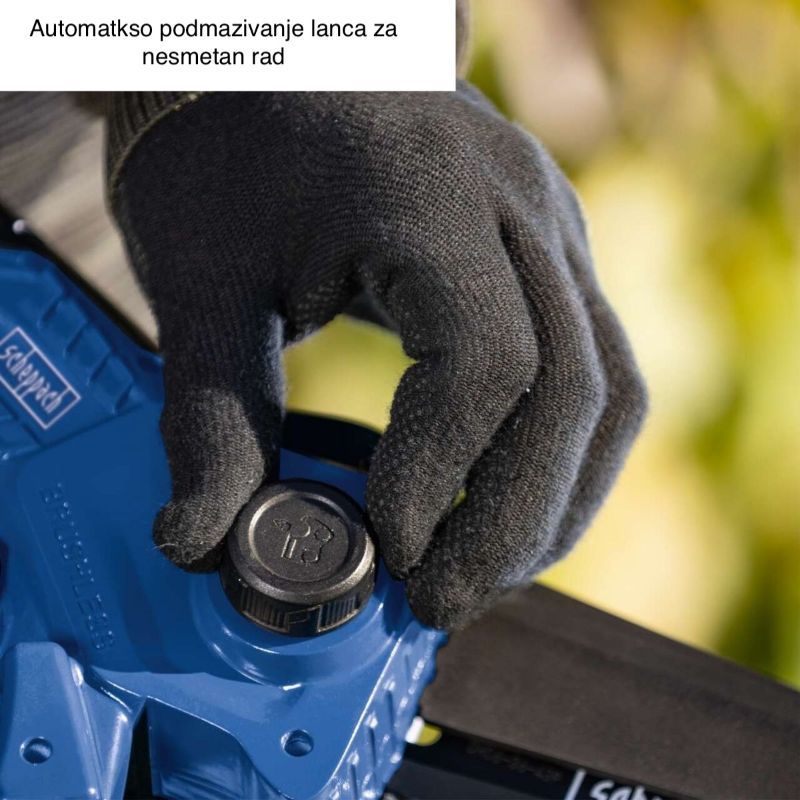 Automatsko zatezanje omogućuje brzo dovođenje lanca u ispravnu napetost bez kompliciranog štelanja, što smanjuje zastoje i rizik od lošeg reza zbog labavog lanca.
