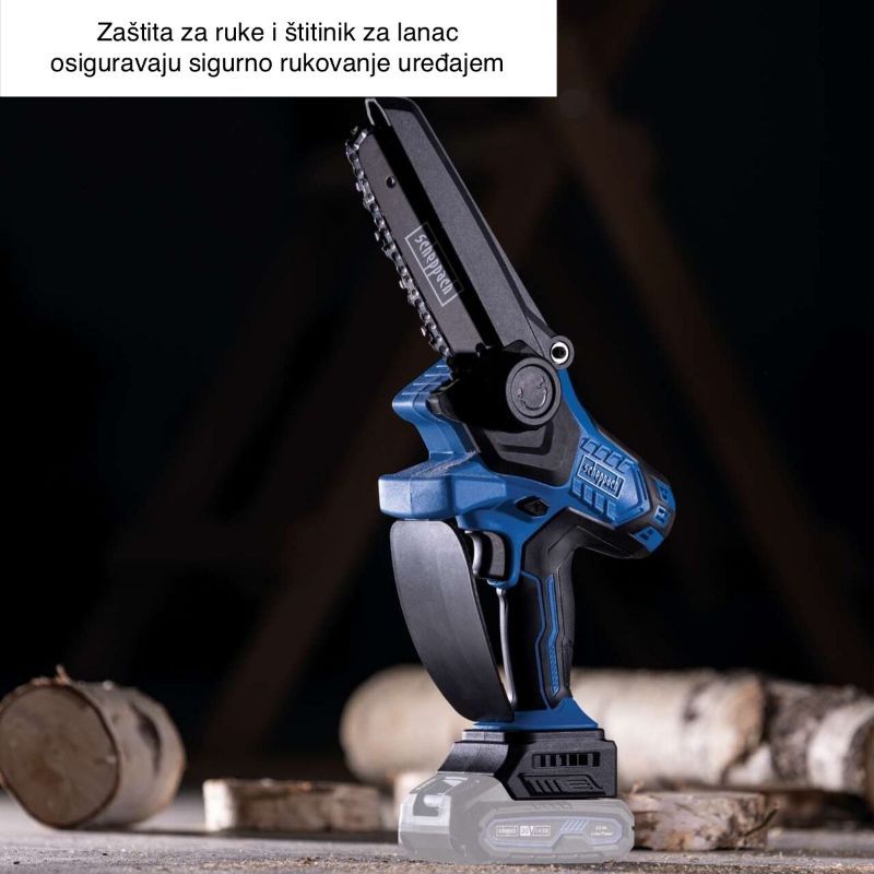 Ugrađeni su štitnik za ruku i štitnik lanca te mekana ručka za stabilan hvat. Niske vibracije i kompaktna masa olakšavaju dulji rad i precizno vođenje alata.