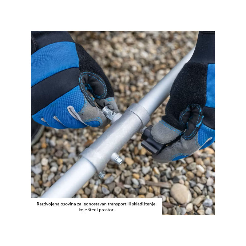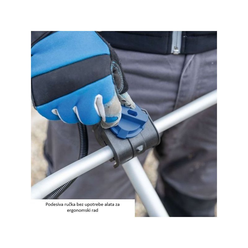 - Ergonomija je riješena bicikl-ručkom s dvoručnim upravljanjem, neklizajućom mekom površinom i remenom za rame.