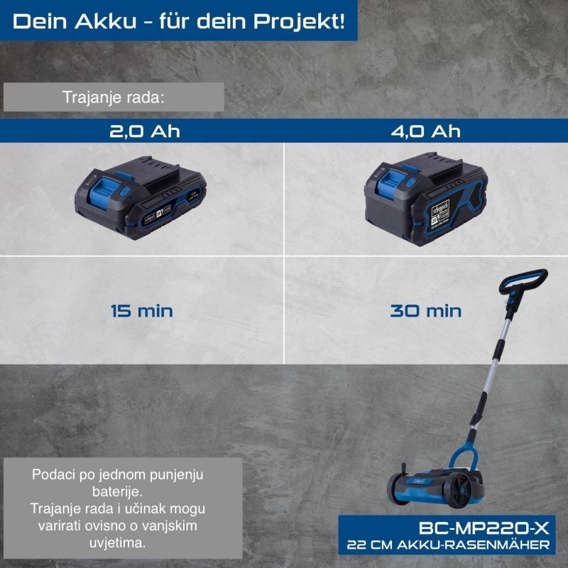 - Akumulatorski trimer BC-MP220-X je kompaktan model za male travnjake i uske vrtne površine, gdje je bitna upravljivost uz rubove i na uskim prolazima.