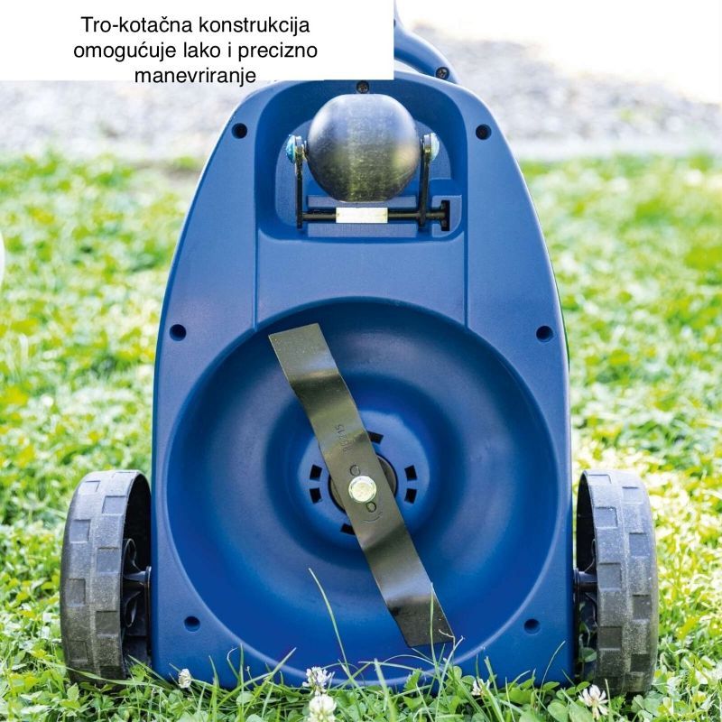 - Širina košnje od 21,5 cm cilja precizno košenje uz gredice, zidove i staze, bez velikog gabarita stroja.
