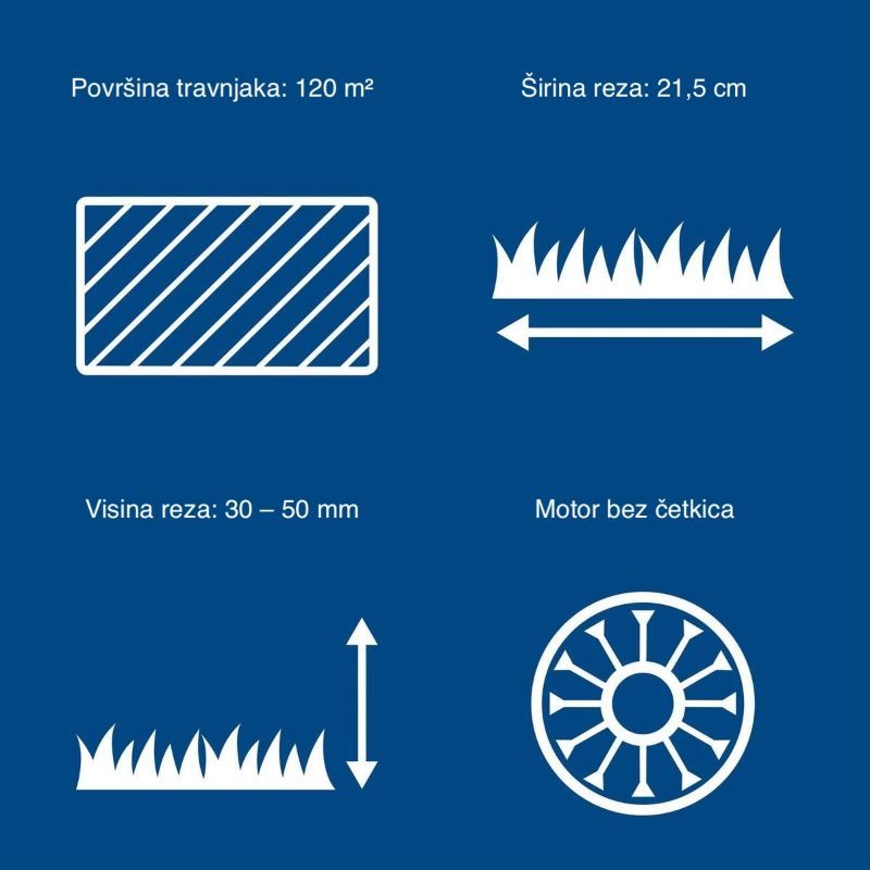 | Preporučena površina košnje | Do 120 m² |
