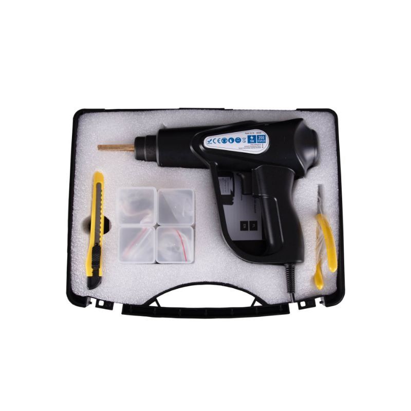 • profesionalni aparat za zavarivanje plastike snage 70 W dolazi s 200 spajalica različitih vrsta (ravne, unutarnje i sinusoidne) i omogućuje brze, precizne i trajne popravke plastičnih predmeta
