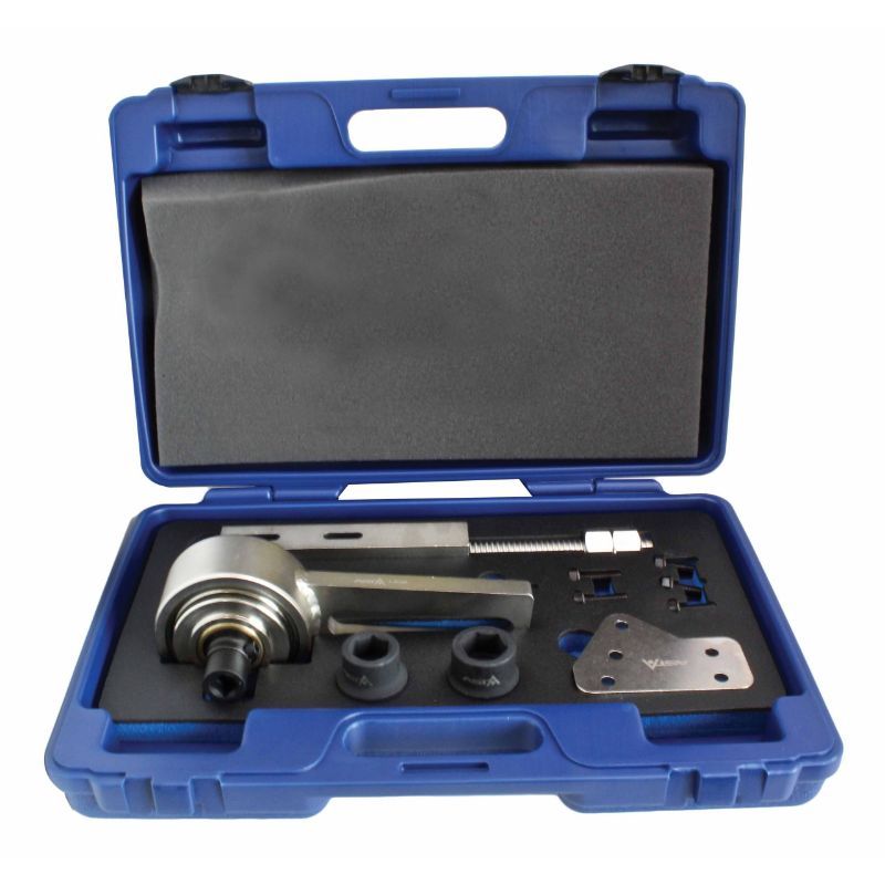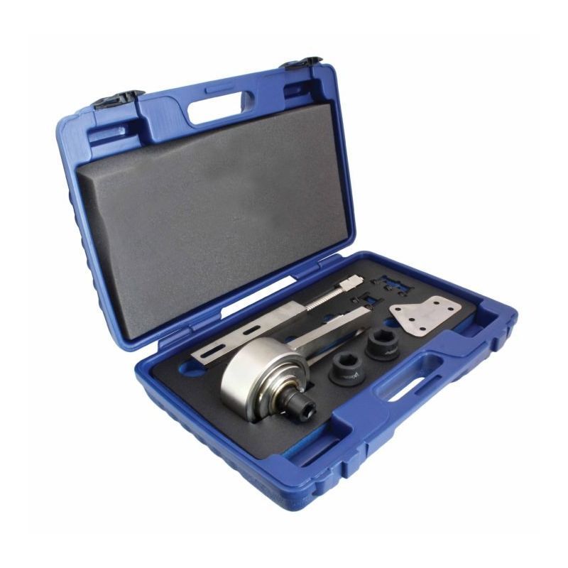 Set je namijenjen za postavljanje ispravnog položaja ugradnje i ispravan redoslijed zatezanja vijaka remenice radilice pri radu na pogonu zupčastog remena. Cilj je kontrolirano pozicioniranje i zatezanje bez “improvizacija”, jer greška na remenici radilice direktno utječe na fazu i pouzdanost rada motora. Operativno: ovo je alat za servisne zahvate gdje se traži ponovljivost i minimaliziranje rizika pogrešne montaže.