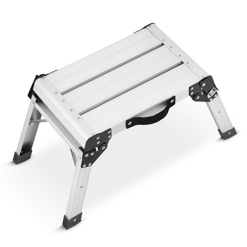 Ovo je niska radna platforma (visina 34 cm) za stabilan oslonac kod kućnih i servisnih zahvata: dohvat gornjih polica, čišćenje, brze montaže i rad u zoni gdje ne trebate “penjanje u više nivoe”. Fokus je na sigurnijem podestu (platforma 30 × 47 cm), a ne na visinskom radu kao kod ljestvi s više stepenica.