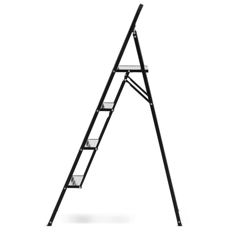 - ljestve su sklopive i u zatvorenom stanju zauzimaju samo 4,5 cm širine, što olakšava pohranu u ormare, niše ili iza vrata