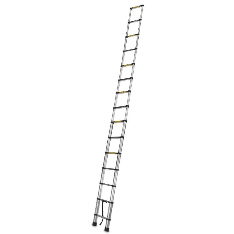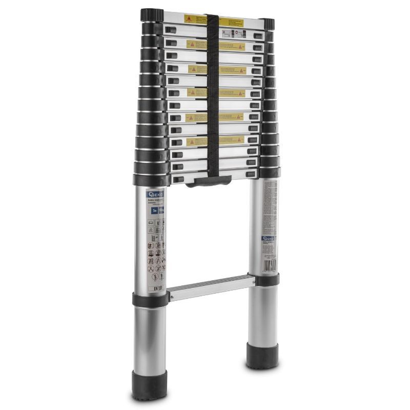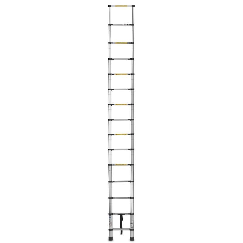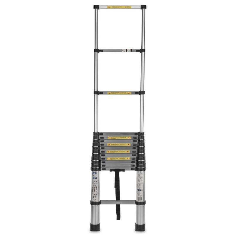 U sklopljenom stanju visina je 97 cm, što olakšava spremanje u vozilo, radionicu ili skladište s ograničenim prostorom. Teleskopski format je prednost kada ljestve često premještate između lokacija ili radnih zona.