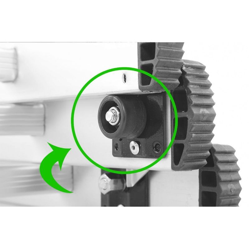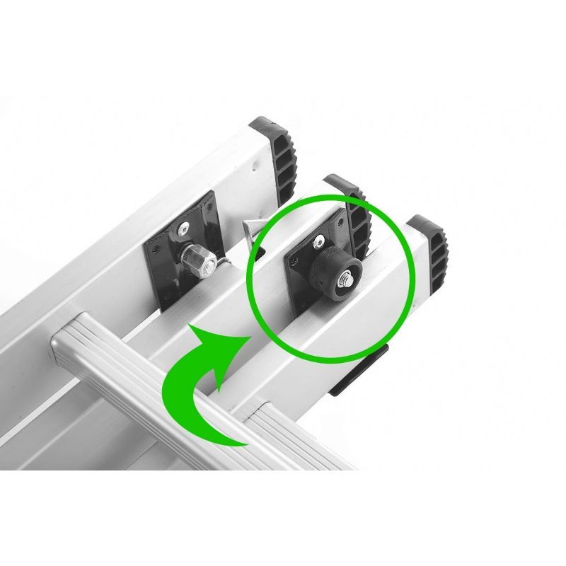 - zahvaljujući poliamidnim valjcima i čeličnim vodilicama, rukovanje produžnim dijelovima je izuzetno glatko i sigurno, bez oštećenja aluminijskih profila