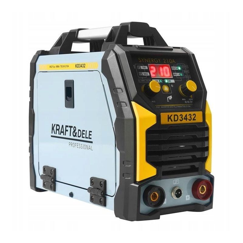 - uređaj radi na standardnom naponu 230 V / 50 Hz i pruža maksimalnu izlaznu struju do 210 A, što omogućuje rad s elektrodama promjera 1,6–4,0 mm te žicom promjera 0,8 i 1,0 mm