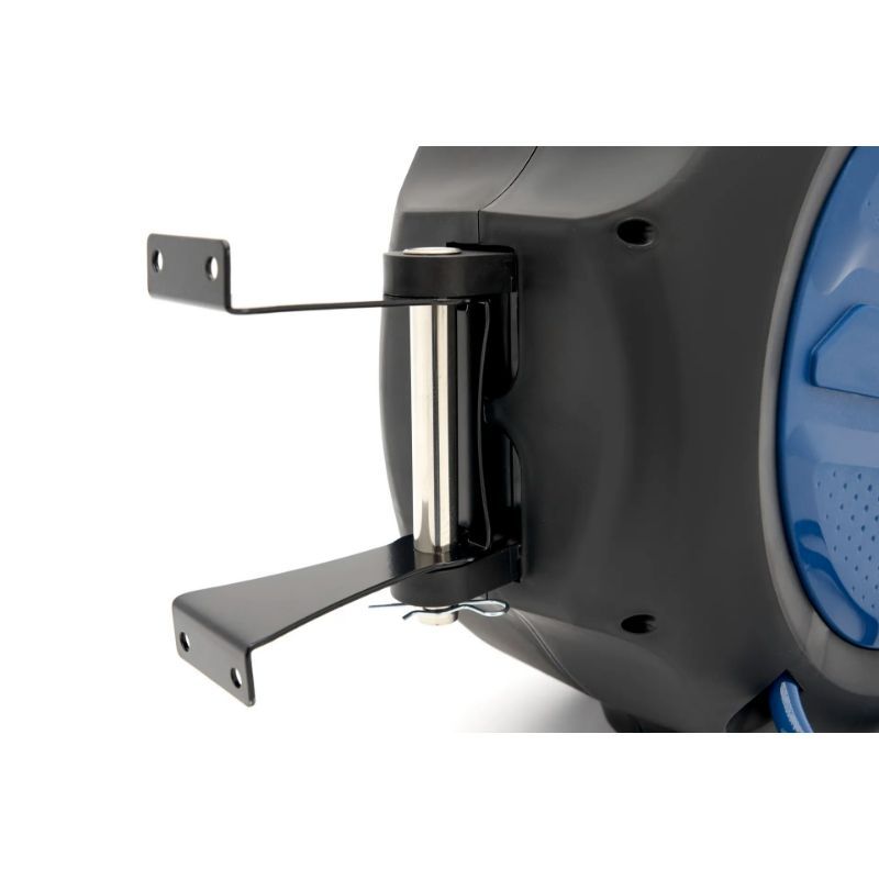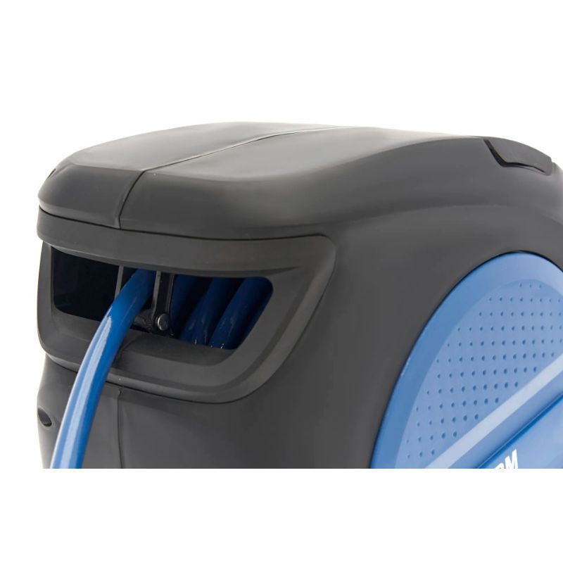 - čvrsto kućište štiti crijevo od habanja i nečistoća, produžujući vijek trajanja, dok zidni nosač s mogućnošću zakretanja od 180° omogućuje slobodno kretanje tijekom rada