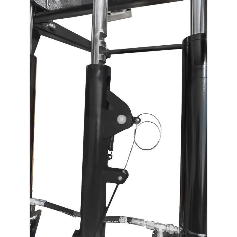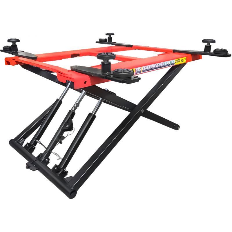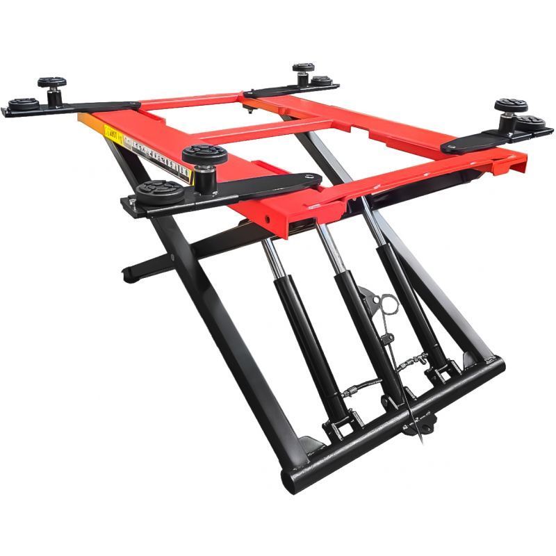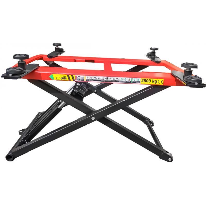 Škarasta konstrukcija osigurava ravnomjerno podizanje i dobru stabilnost vozila. Gumene podloge dodatno štite kontaktne točke i sprječavaju klizanje. Sigurnosni prekidač i upravljačka kutija omogućuju kontrolirano rukovanje.
