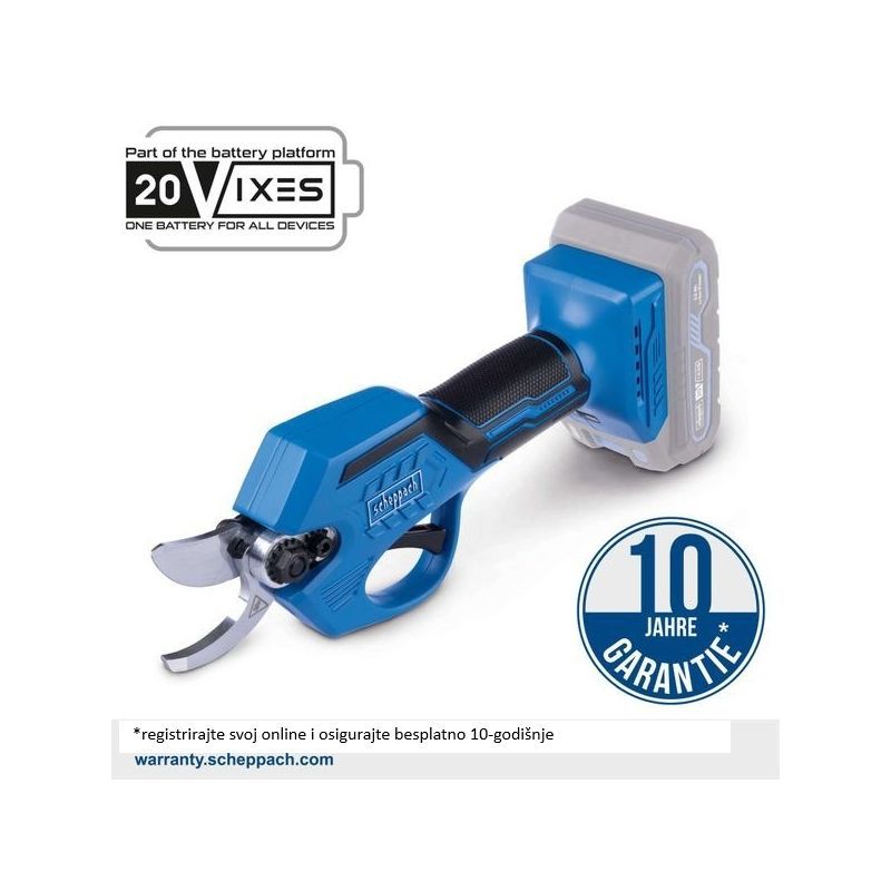 Škare su dio sustava 20V IXES i kompatibilne su s baterijama/punjačima iz tog sustava. Baterija i punjač se prodaju zasebno, pa za rad trebate postojeću 20 V bateriju iz sustava ili je kupiti dodatno.