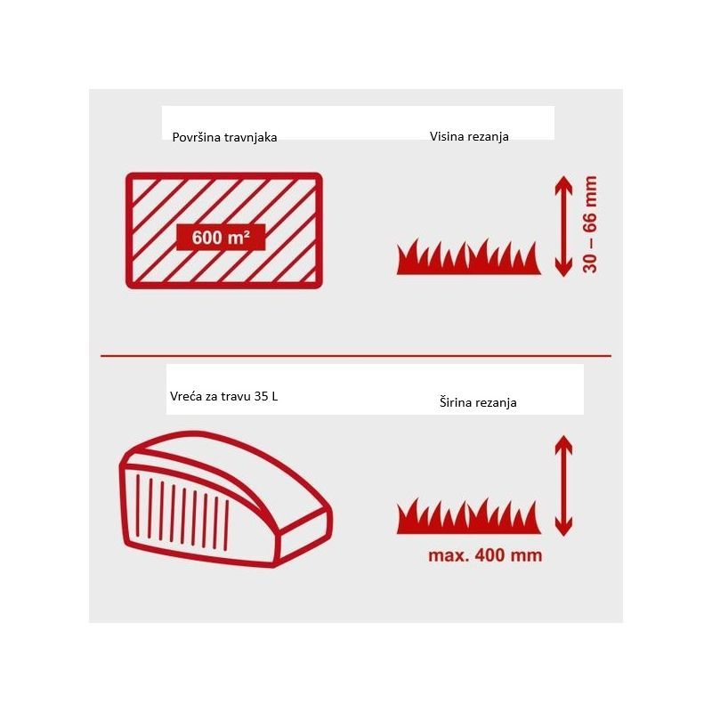 | Naziv artikla | Benzinska kosilica MP132-40, širina 40 cm, vreća 35 L |