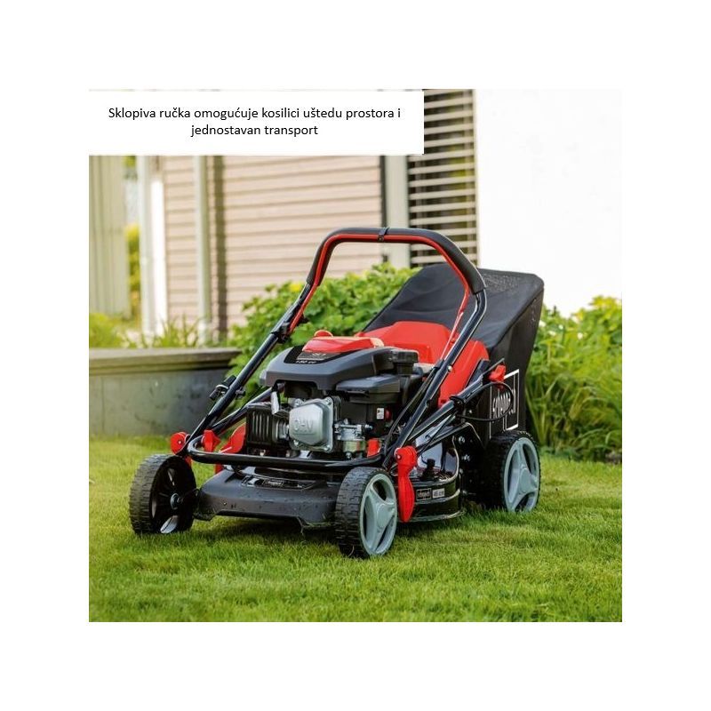 Namijenjena je za košnju okućnica i vrtova gdje je potrebna veća širina i svestranost (sakupljanje, malčiranje, bočno izbacivanje). Deklarirana je za travnjake do 1000 m², što je tipičan “sweet spot” za ovaj format kosilice.