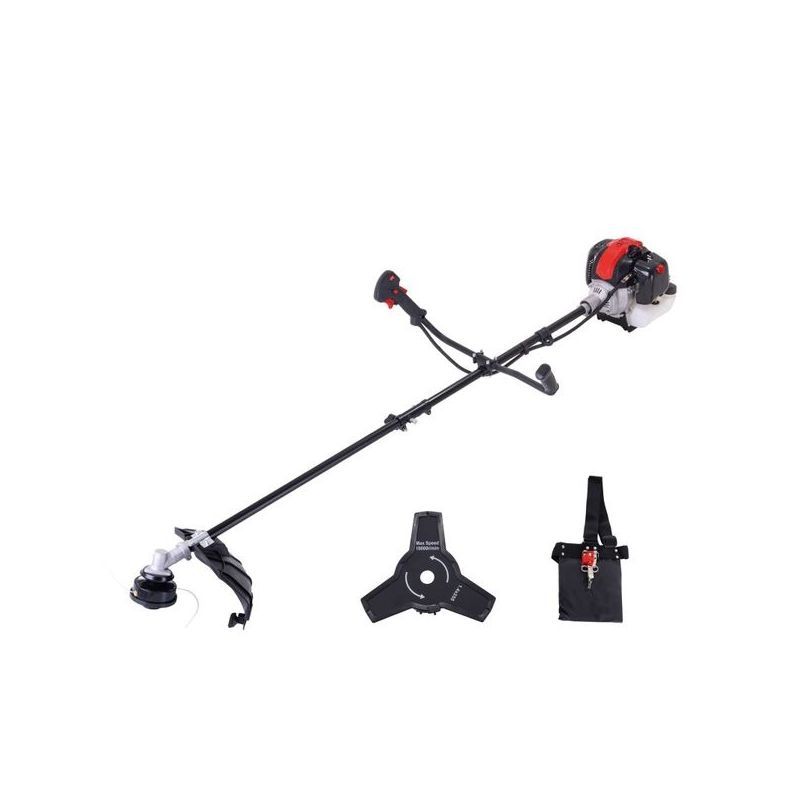 Za dulji rad predviđeni su remen za rame i ručka u stilu bicikla s dvoručnim upravljanjem. Operativno: dvoručna kontrola daje stabilnije vođenje reznog alata, a remen raspoređuje masu i smanjuje umor ruku.