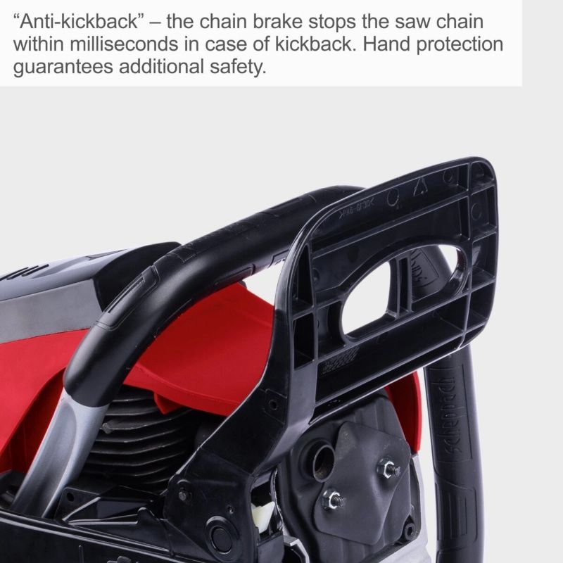 Anti-Kickback kočnica reagira u svega nekoliko milisekundi, a zaštita za ruke štiti od povratnog udara i osigurava stabilan zahvat