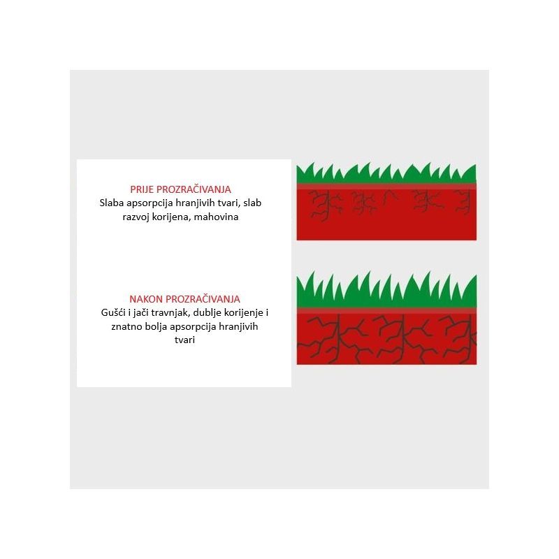 Koristi se za brzo uklanjanje mahovine i korova s travnjaka te za prozračivanje površinskog sloja kako bi se poboljšao dotok zraka, vode i hranjiva do travnog korijena. Namijenjen je za intenzivniju njegu travnjaka kada košnja više nije dovoljna za dobar rast.