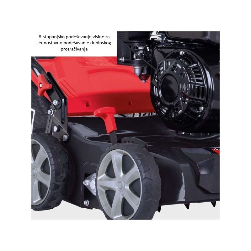 Ugrađen je 4-taktni benzinski motor snage 5,4 KS / 4 kW zapremnine 212 ccm. To je konfiguracija za rad bez električne mreže i za konstantan radni učinak na većim travnjacima, uključujući i zahtjevnije uvjete (više mahovine, zbijeniji sloj).