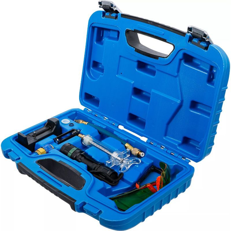 Set je namijenjen lociranju curenja u A/C sustavima vozila s rashladnim sredstvom R134a. Radi se o UV detekciji iz neposredne blizine, gdje se curenje identificira vizualno uz UV svjetlo i odgovarajući aditiv (boja) u sustavu.