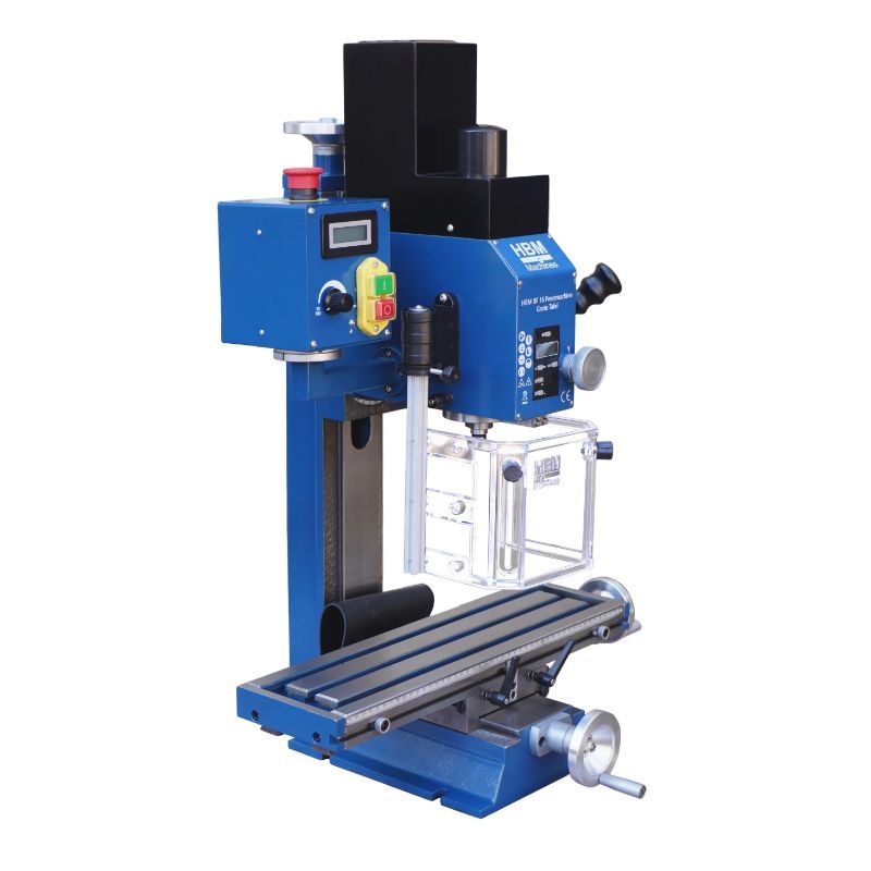 HBM BF 16 je kompaktna i precizna glodalica za metal namijenjena profesionalcima i hobi majstorima koji trebaju stabilan stroj s velikim pomičnim stolom i digitalnim očitanjima.