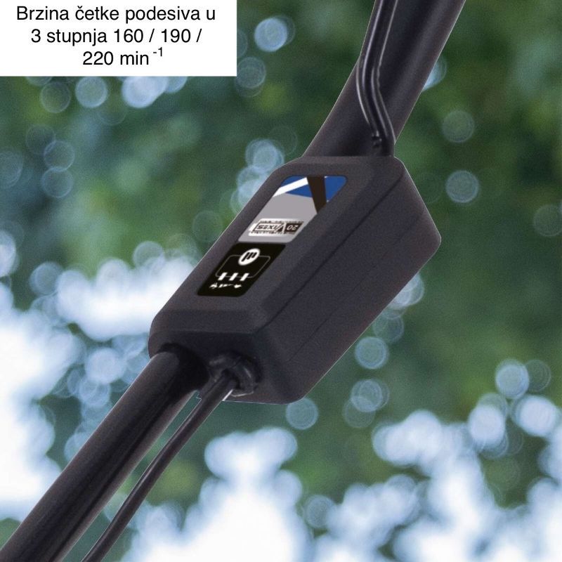 Radi na bateriju unutar 20V IXES sustava. Ovaj model je naveden kao Set S i uključuje bateriju 2 Ah i punjač 2,4 A. Operativno: s većim kapacitetom baterije dobit ćete dulje vrijeme rada po ciklusu čišćenja, što je bitno kod većih dvorišta.