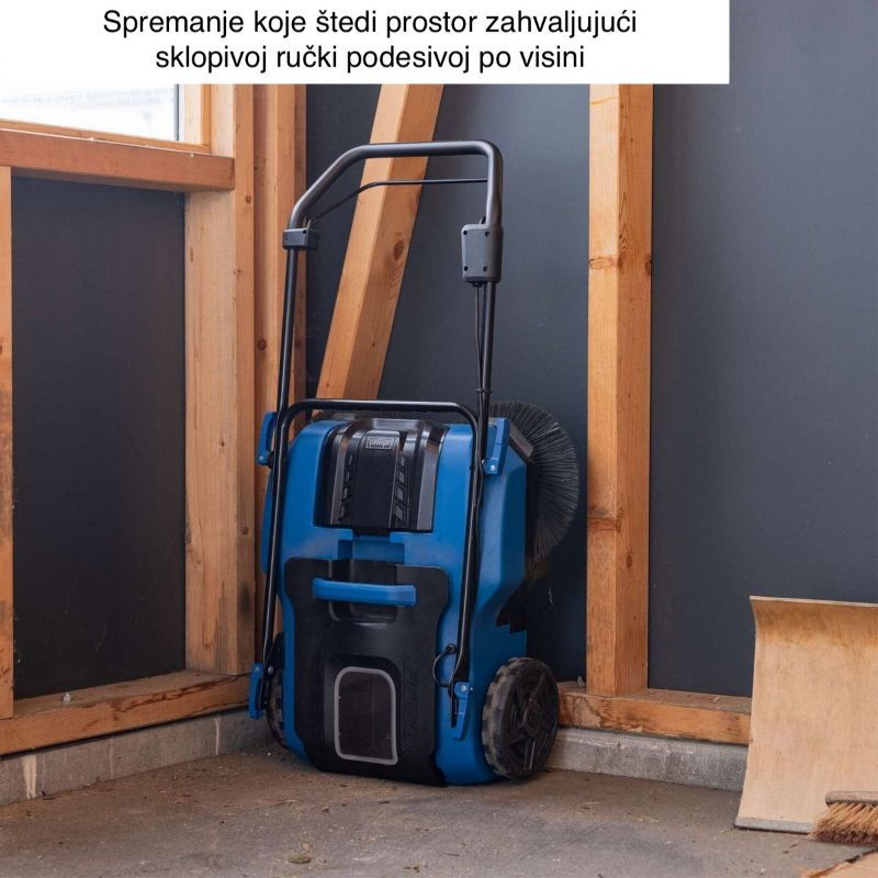 Namijenjen je za prilaze, pločnike, terase i dvorišta gdje želite brzo pokupiti grubu i finu prljavštinu bez dodatnog metenja. Operativno: najviše koristi daje na većim tvrdim površinama (beton, opločnici, asfalt) gdje ručno metenja troši vrijeme i energiju.