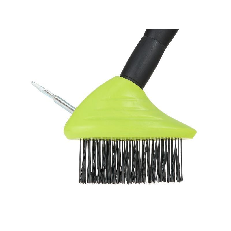 izdržljive žičane čekinje omogućuju uklanjanje tvrdokorne prljavštine, ostataka biljaka i naslaga, dok integrirani strugač omogućuje temeljito uklanjanje mrlja, mahovine i lišajeva iz spojeva između ploča