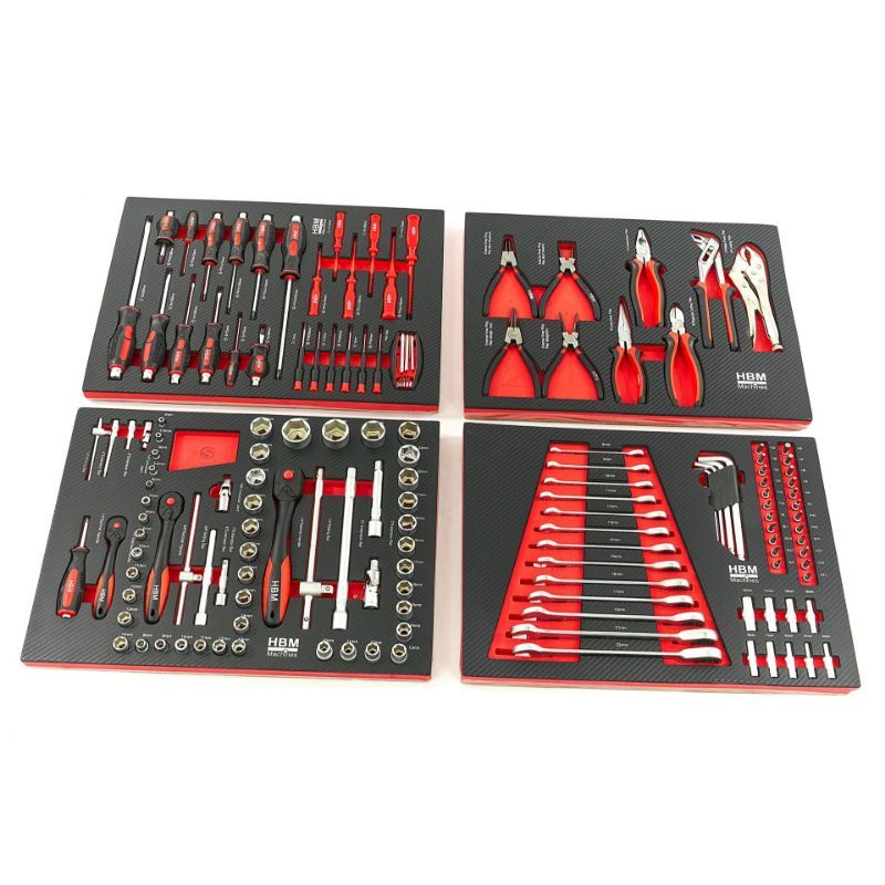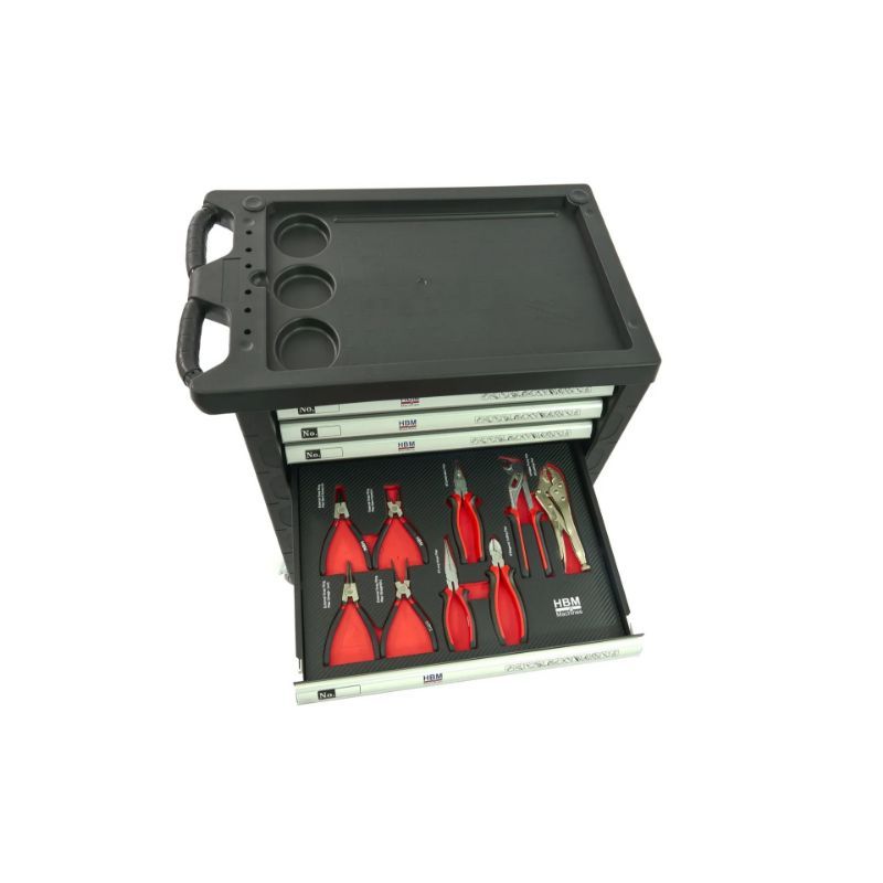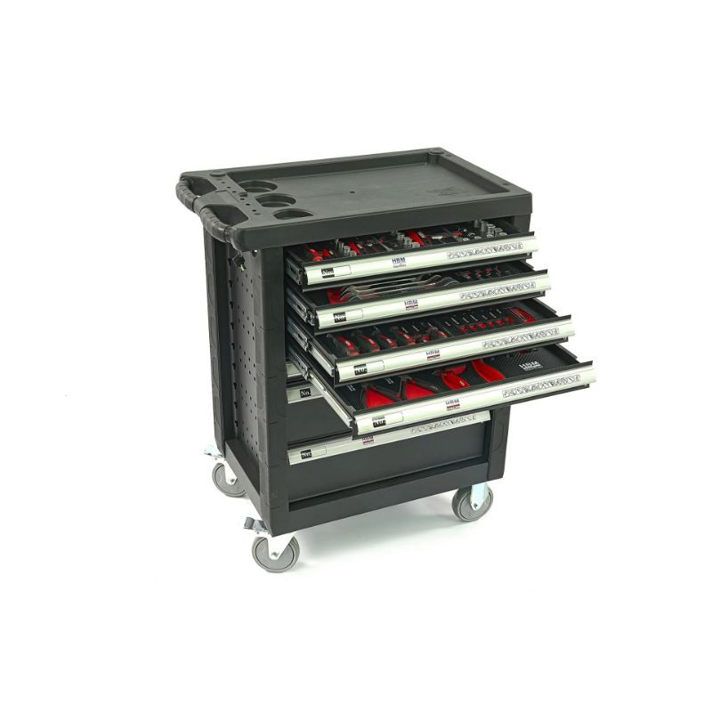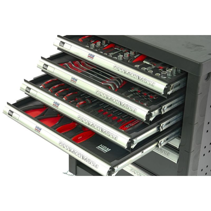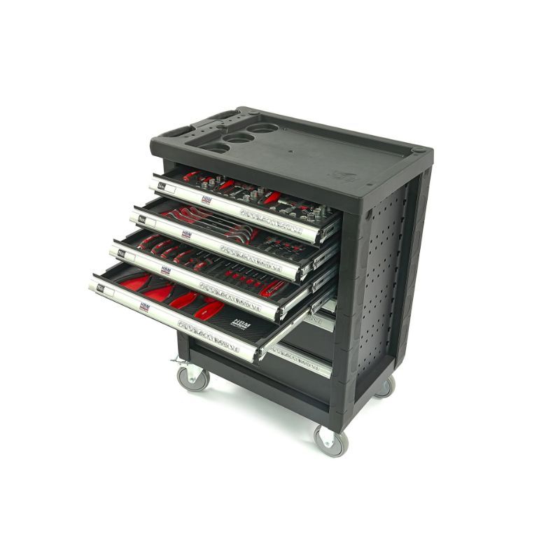 - gornje četiri ladice tvornički su opremljene pažljivo odabranim setovima ključeva, nasadnih ključeva, odvijača i kliješta, dok su ladice 5, 6 i 7 ostavljene prazne za dodatni alat ili osobne konfiguracije