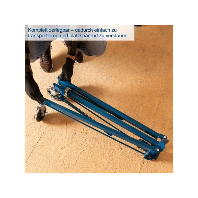 - Scheppach TBL400 dizalica za suhu gradnju idealna je pomoć pri montaži za radove iznad glave u unutarnjoj obradi ili gradnji suhozidom. S TBL400 mogu se uz minimalan napor ugraditi gipsane ploče, iverice, drvo i metalne ploče težine do 68 kg. Veliki raspon podizanja od 1220 mm do 3350 mm i dvije izvlačive ruke s tri položaja izvlačenja (1280 / 2340 / 2950 mm) osiguravaju fleksibilnu upotrebu. Dizalica za ploče može se nagnuti za 60°, što je čini prikladnom za upotrebu na kosim stropovima i zidovima.