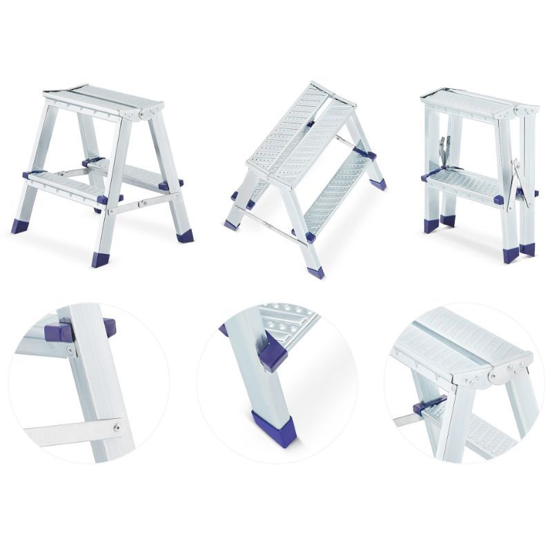 - ravni sustav sklapanja omogućuje da ljestve zauzmu samo oko 16,5 cm u sklopljenom stanju, što ih čini izuzetno praktičnima za spremanje u ormar, špajzu ili između elemenata