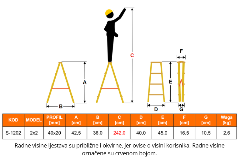 - ovaj model dio je profesionalno razvijene linije dvostranih ljestava koja se ističe izdržljivošću superiornom u odnosu na klasične aluminijske modele