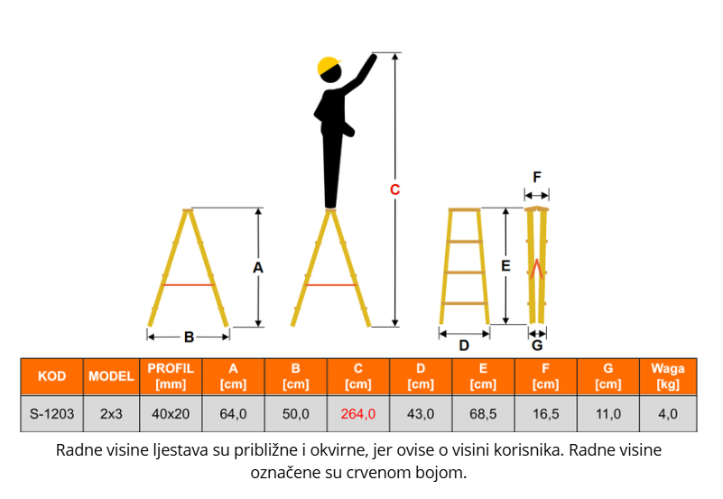 - tip ljestava: dvostrane, ojačane