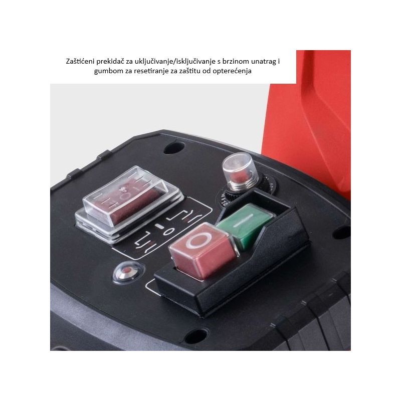 - ugrađena je zaštićena sklopka za uključivanje/isključivanje te tipka za resetiranje sa zaštitom od ponovnog pokretanja