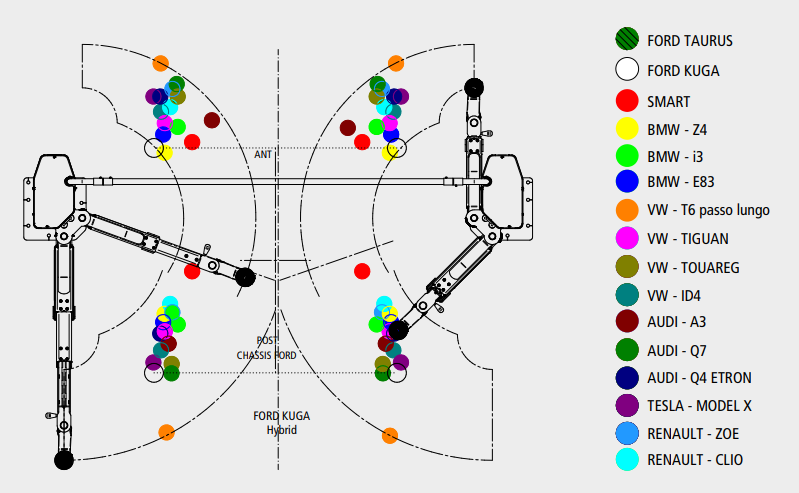 Dizalica se koristi za servisiranje vozila kao što su zamjena ulja, kočnica, ovjesa i radovi na podvozju. Kod EV vozila omogućuje pristup baterijskom kućištu uz pravilno pozicioniranje krakova. U praksi je pogodna za radionice koje rade širok spektar vozila, ali bez ekstremnih opterećenja.