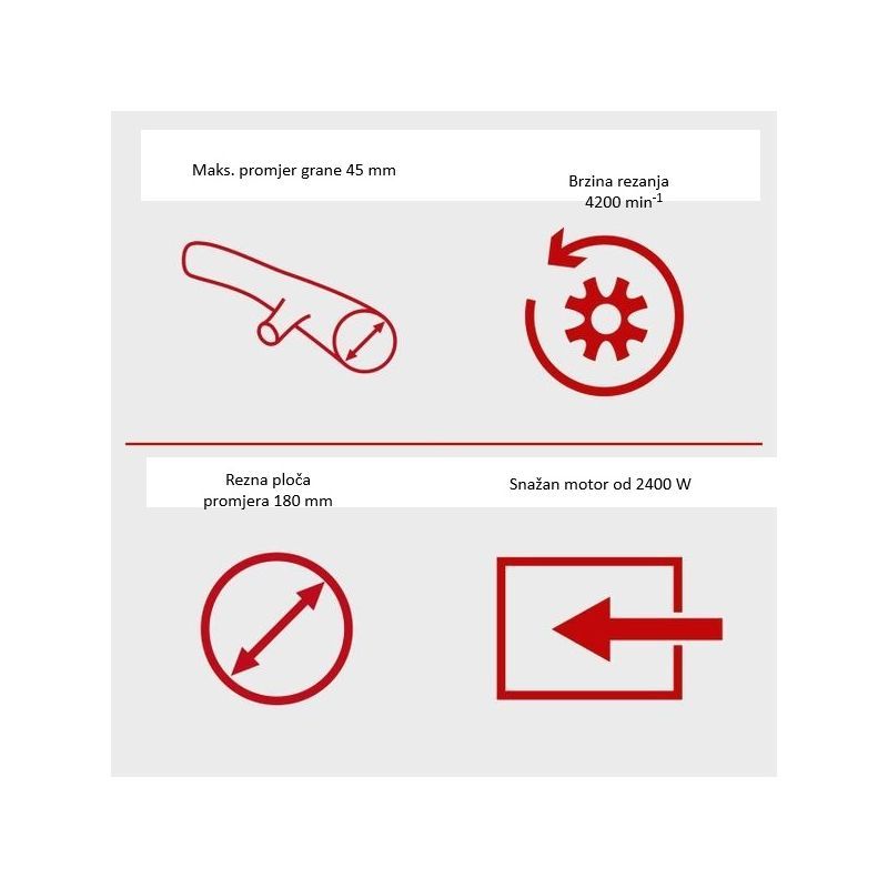 - rezni sklop koristi jedan nož i rezni disk promjera 180 mm