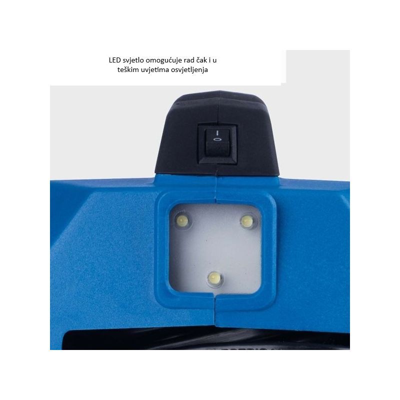 Razina zvučnog tlaka je Lp(A) 82,5 dB, a zvučna snaga Lw(A) 92,0 dB (zajamčeno 94,0 dB). Ugrađeno je LED radno svjetlo, što je praktično kod rada u garaži, prtljažniku ili navečer na terenu.