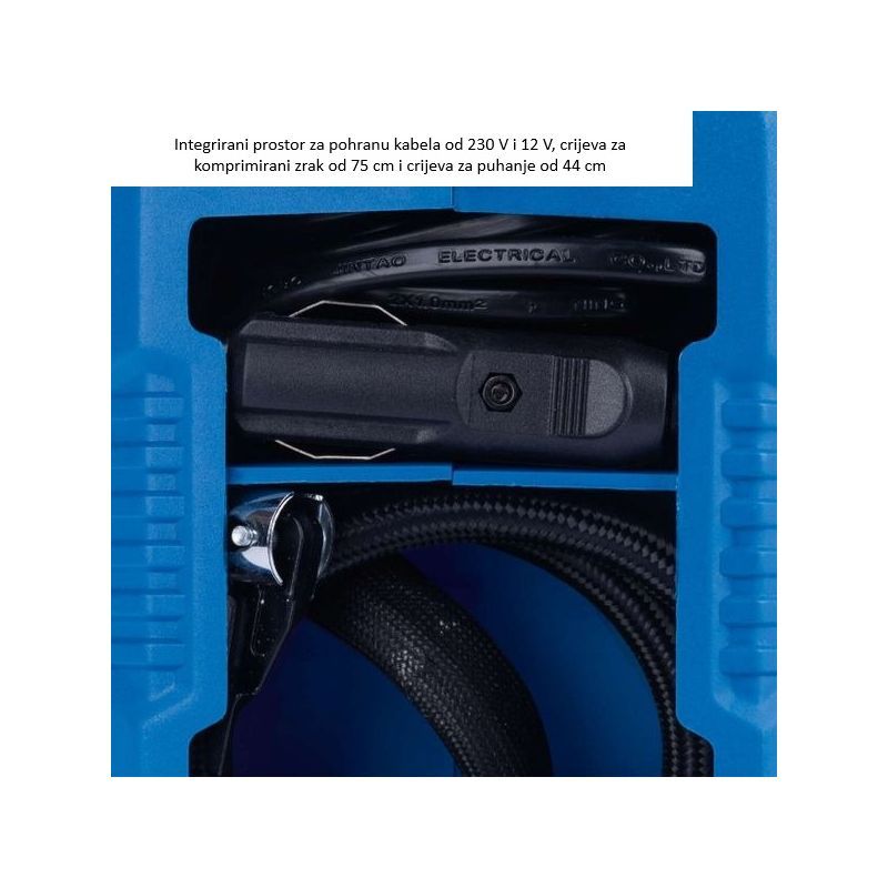 - u kompletu su nastavci za ventil i lopte, konusni adapter za opremu na napuhavanje, visokotlačno crijevo 75 cm i crijevo za puhanje 44 cm