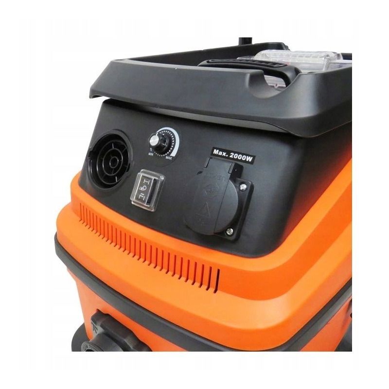 Utičnica služi za sinkronizaciju rada. Kada spojite električni alat (npr. brusilicu) i uključite ga, usisavač se automatski pokreće. To omogućuje trenutno usisavanje prašine izravno na izvoru (kroz crijevo spojeno na alat), osiguravajući čisto radno okruženje.
