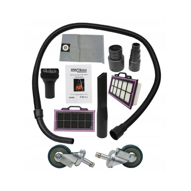 Suho usisavanje: Visoka snaga omogućuje usisavanje ne samo fine prašine (gips, drvena prašina) već i težih i grubljih otpadaka (metalne strugotine, manji komadi građevinskog otpada) uz pomoć HEPA filtera i vrećice za prašinu.