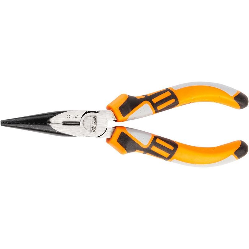 Ravna kliješta s dugim vrhom, CR-V čelik, tvrdoća 58–64 HRC, antikorozivni premaz, neklizajuća ručka.