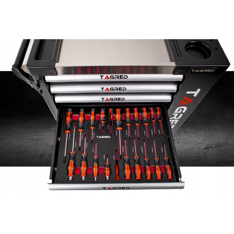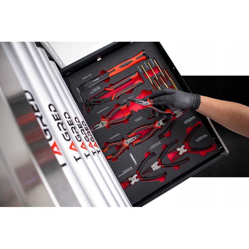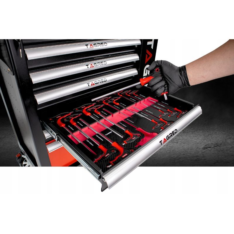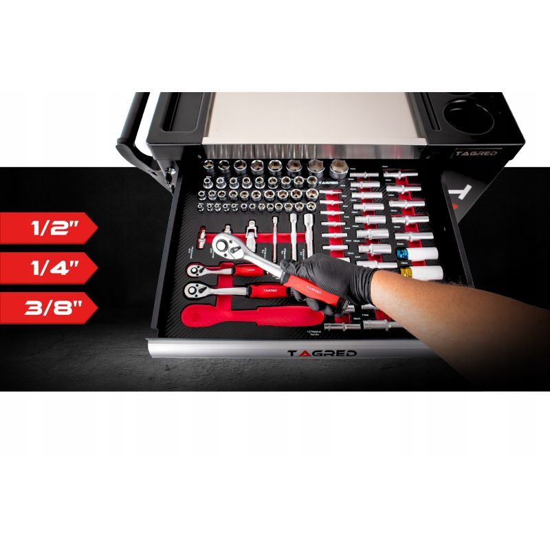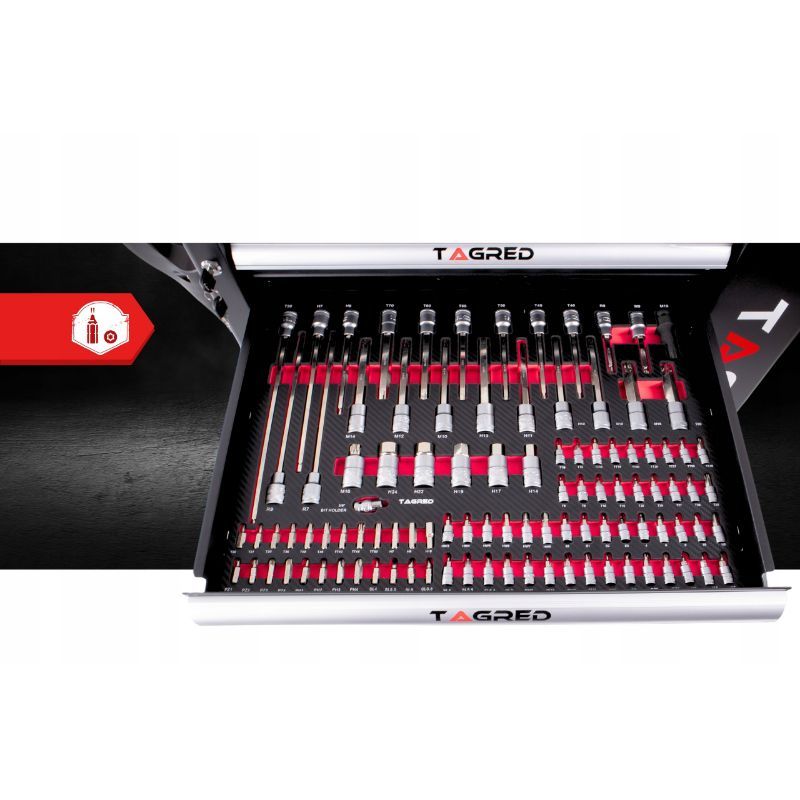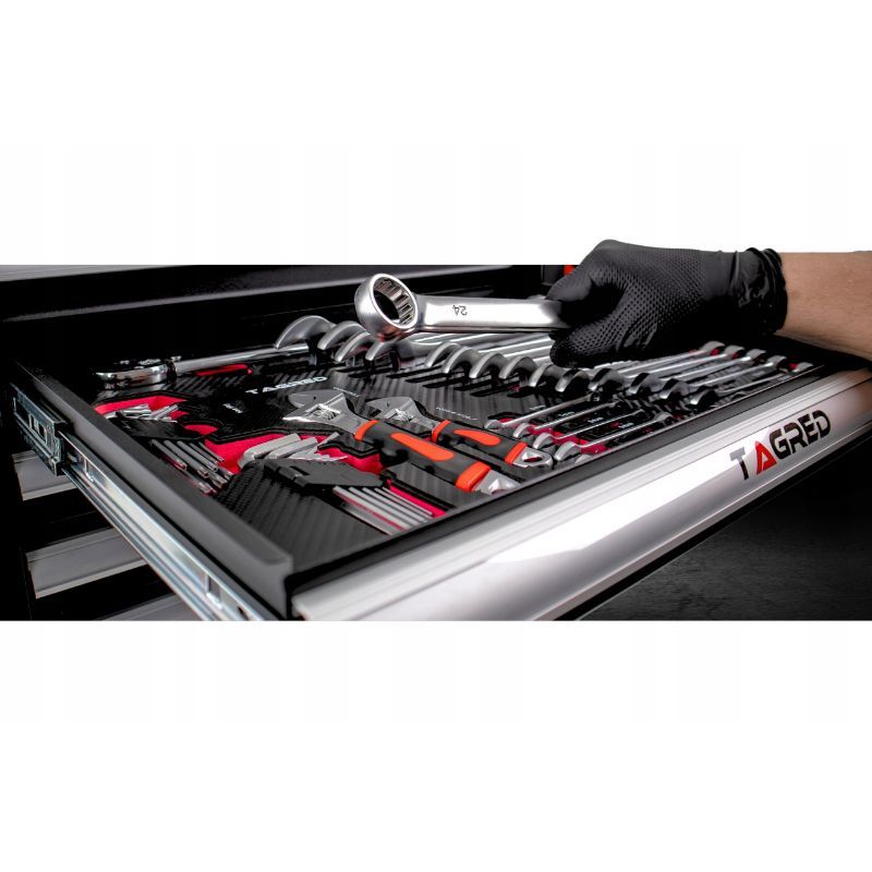 sadrži 298 pažljivo organiziranih alata, izrađenih od krom-vanadij čelika CrV6140, što jamči visoku otpornost na trošenje i dug radni vijek