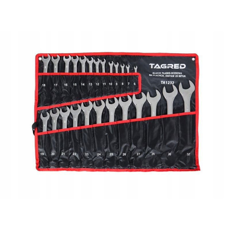 - set sadrži 25 kombiniranih okasto-viljuškastih ključeva u rasponu 6–32 mm, prikladnih za sve vrste mehaničkih, servisnih i montažnih radova